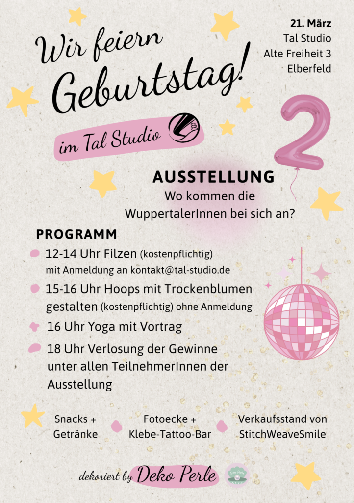 Ausgewählte Kunstworkshops findet ihr hier. Anmeldung unter kontakt@tal-studio.de.